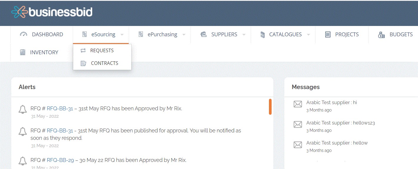 The BusinessBID eProcurement software dashboard comes along with all the necessary features which are used in everyday business.
