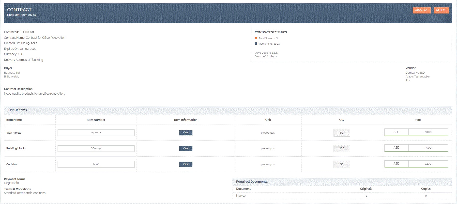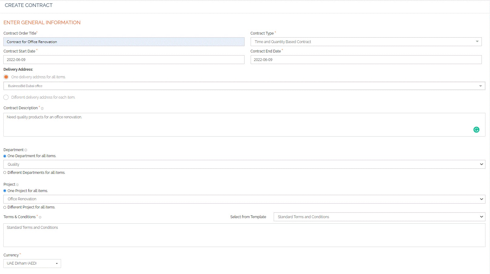 Contract Management is one of the promising features of BusinessBID eProcurement software that gives great flexibility and ease of use to create and manage contracts.