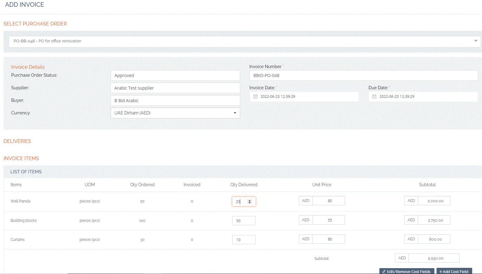 Similarly, we can generate an invoice by selecting the PO that we have created.