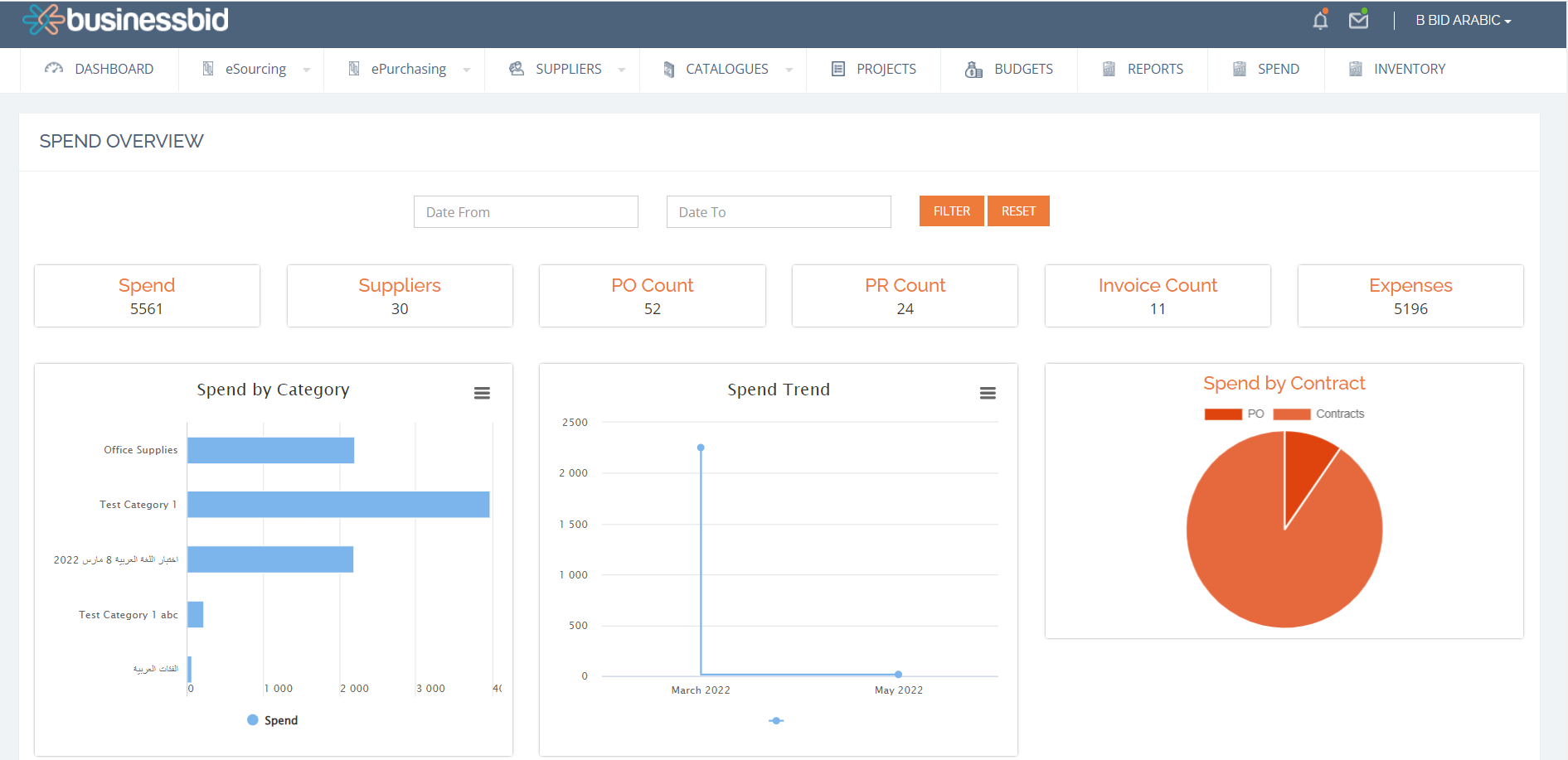 The spend Analysis Module in BusinessBid eProcurement software gives a clear picture of the spending with graphical representation and spend analytics.