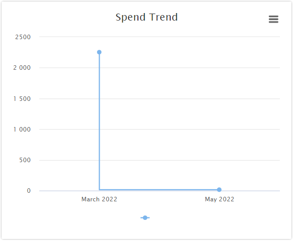 This graph depicts the spending trend that is observed between the selected dates. It is useful when you want to determine the spending trend of your business.